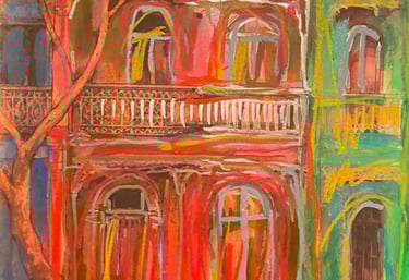 My chosen mediums—linoprint and oil pastel—offer contrasting yet complementary approaches: one precise and structured, the other expressive and immediate. Both allow me to distill the character of a street, a home, or a building into an image that feels alive.